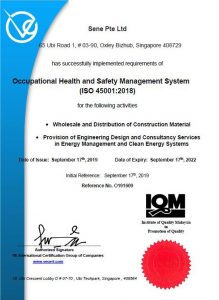 SENE has been certified to be in adherence of ISO 45001:2018 to demonstrate occupational health and safety management systems.