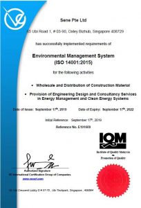 SENE has been certified to be in adherence of ISO 14001:2015 to demonstrate effective conduct of environmental management systems.